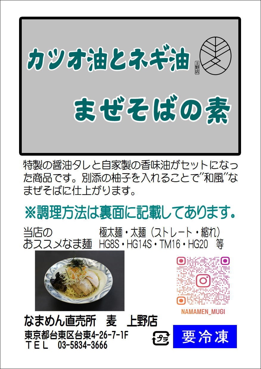 特製の醤油だれとカツオ油・ネギ油を使用した『あっさり系』のまぜそばたれセットです。付属のゆず皮で和風まぜぞばの完成です!